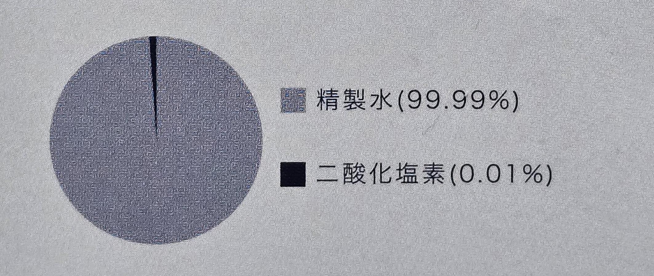 アルコールや塩素系でない、精製水99.99%・二酸化塩素0.01%でできており、安全性が高く、界面活性剤不使用で、ベタつかず布製品を傷つけません